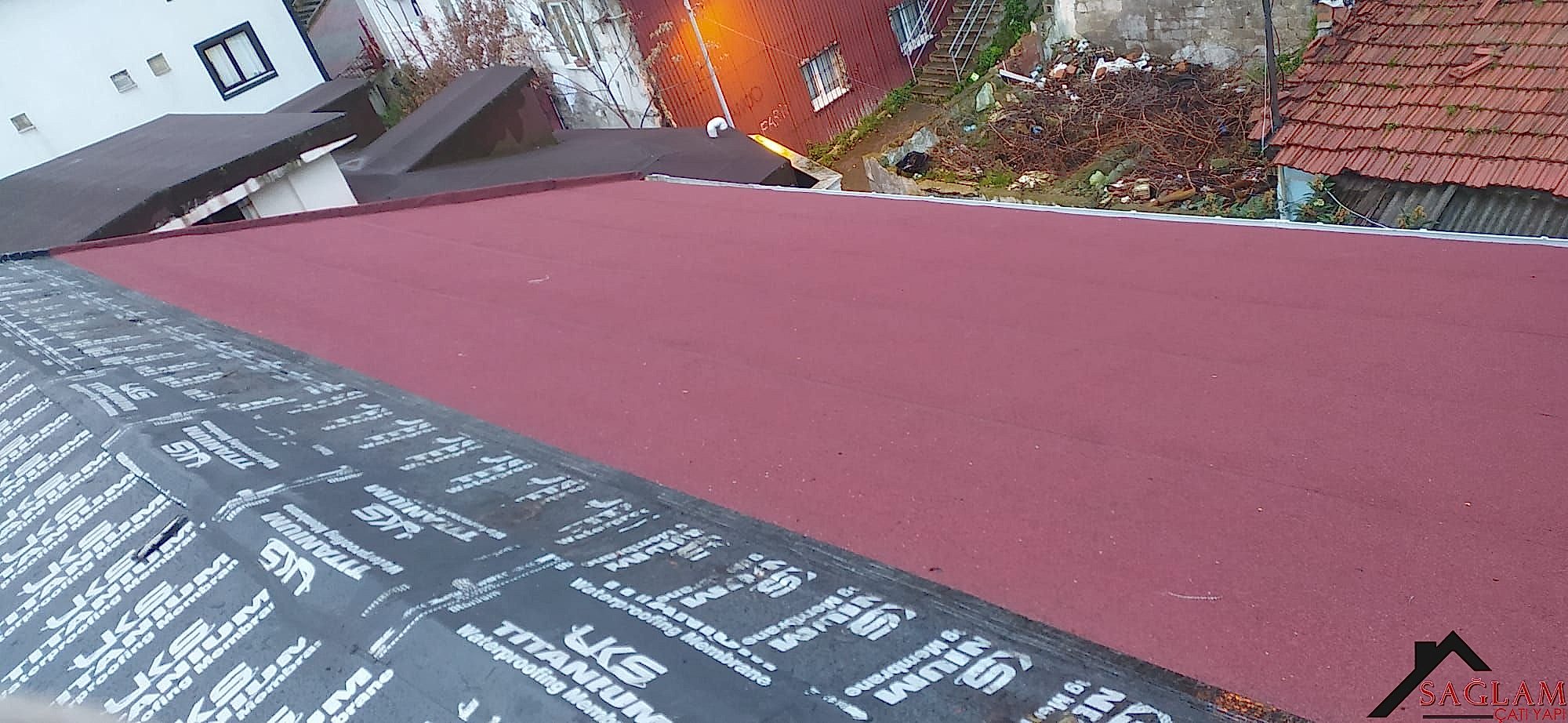 Membran çat� malzemeleri h�zla suya dayan�kl� hale gelir ve sadece 24 saat içinde kürle�ir. Membran çat�lar, poliüretan, asfalt, tek kat, bitüm, fiber çimento levhalar ve beton dahil olmak üzere çe�itli çat� kaplama malzemeleriyle bezenmi�tir. Ek bir son kat ve granül veya kum gibi kaymaz bir madde ile birlikte kullan�ld���nda, malzemenin su geçirmezlik özellikleri, normal orta-a��r yaya trafi�inde bile kal�r.